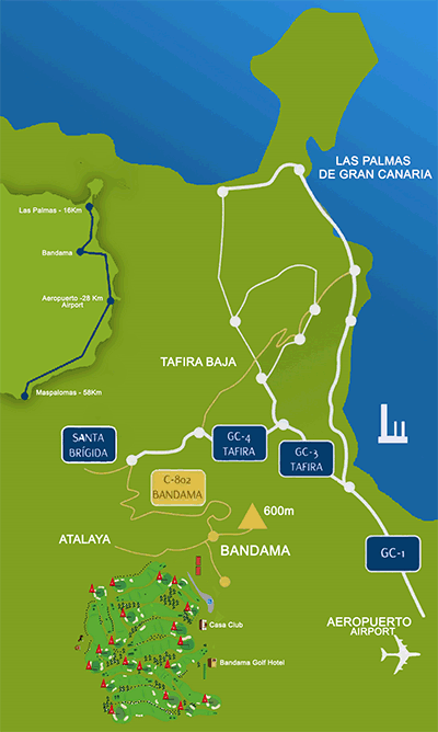 | The facilities are located in the Bandama area, in the municipality of Santa Brigid. The fastest and most convenient way is to get through the ring, take the exit direction Tafira GC-4 and then take exit GC-802 towards Bandama. |